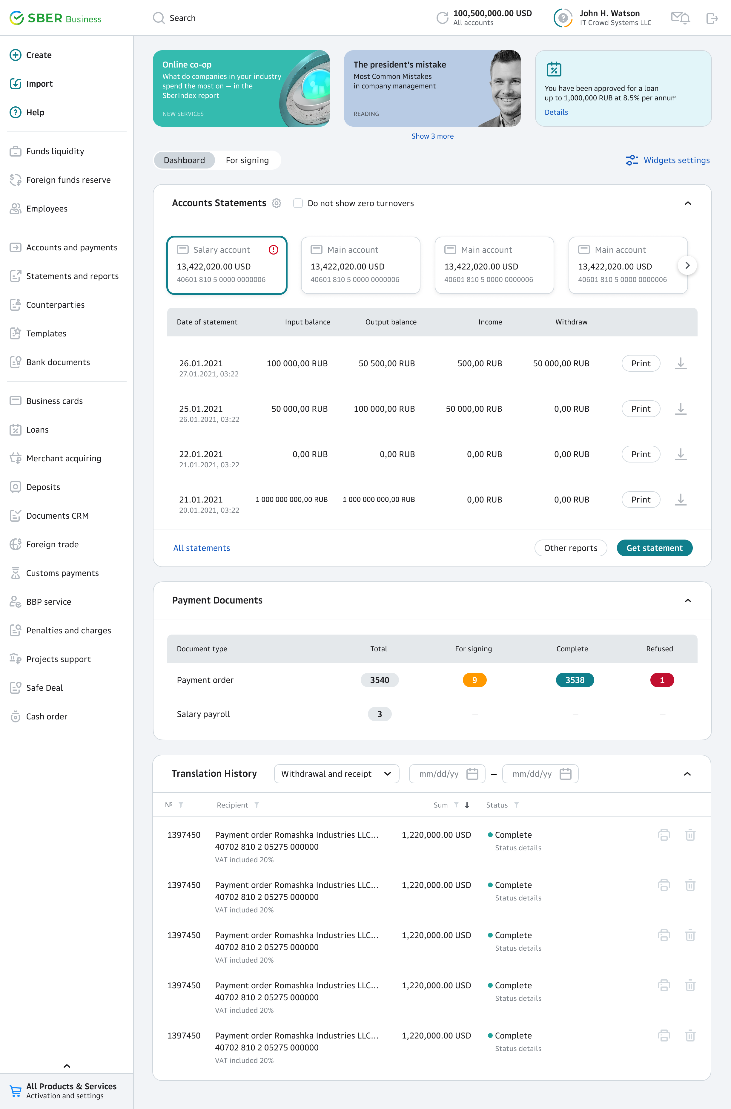 SberBusiness is an online bank designed for business. While the majority of its users are small business owners, the website is also used by representatives of large businesses.